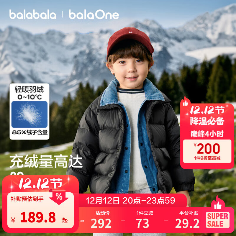 包邮 巴拉巴拉童装儿童羽绒服男女童2025新款宝宝冬装拼接外套三防保暖上衣百搭 黑色牛仔-灰鸭绒-85%绒子 110 充绒量70g